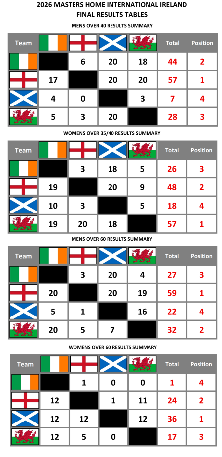 On behalf of all the England Squash Masters Trustees and members, I would like to wish all our England Teams (Women's 35/40 and 60, Men's 40 and 60) travelling to Ireland for the first of the Masters Home Internationals weekend good luck. We hope you will all have a great weekend of competitive Squash and wonderful camaraderie. And of course, play well and hopefully bring the trophies back to England! Safe travels. |